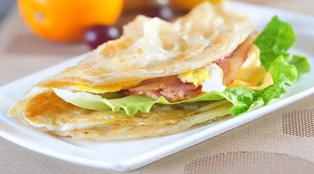 下午4点,小店门口已经有五六个白领在排队。放面团、煎鸡蛋、配作料……三分钟后,两个手抓饼新鲜出炉递给了前面的顾客。和传统烙饼不太一样,这个饼千层百叠,面丝千连,外层是淡淡的金huang色,内层柔软白嫩。