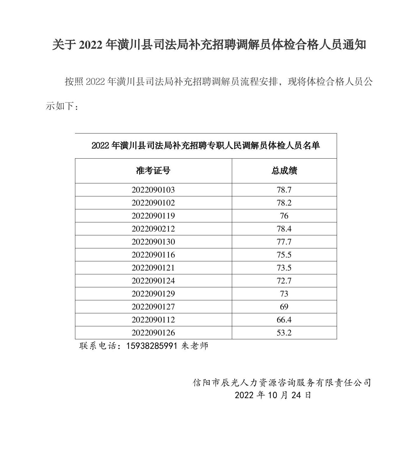 关于2022年潢川县司法局补充招聘调解员体检合格人员通知